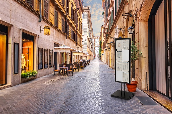 Vrijstaande en hangende verlichte en onverlichte menuvitrines voor binnen en buiten en overige menudisplays