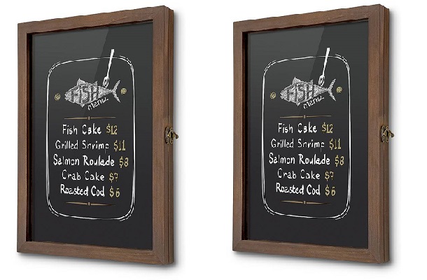 Menuvitrine wand Luxe LED verlicht- teak - 4xA4