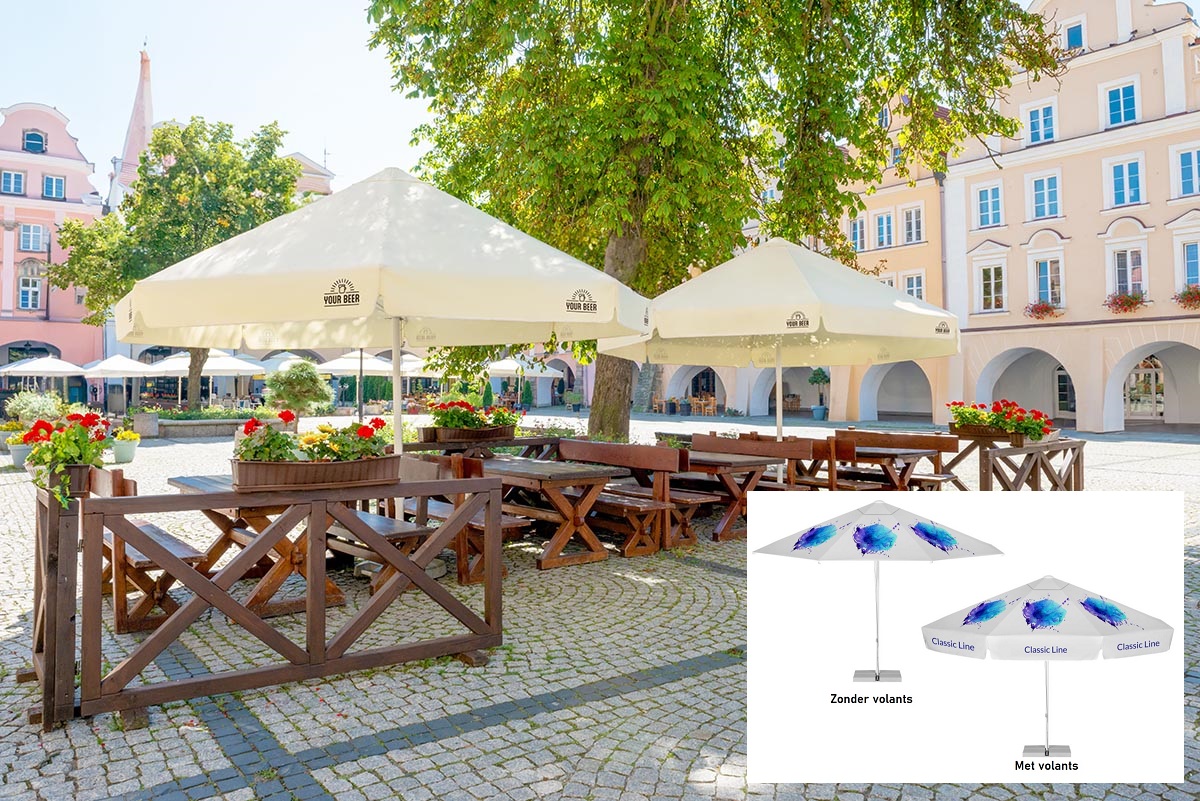 Bedrukte parasols: klein- en grootformaat