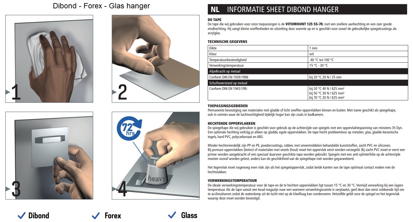 Dit zijn zelfklevende transparante afstandhouders die u in de hoekjes aanbrengt om de plaat vlak te laten hangen (zie afbeelding).